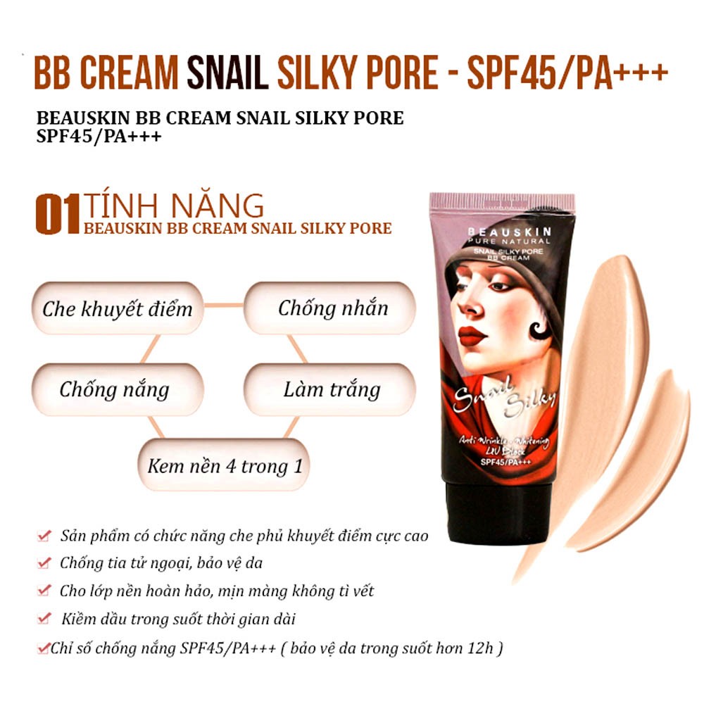Kem nền BB Cream Beauskin Snail Silky Pore SPF45PA+++