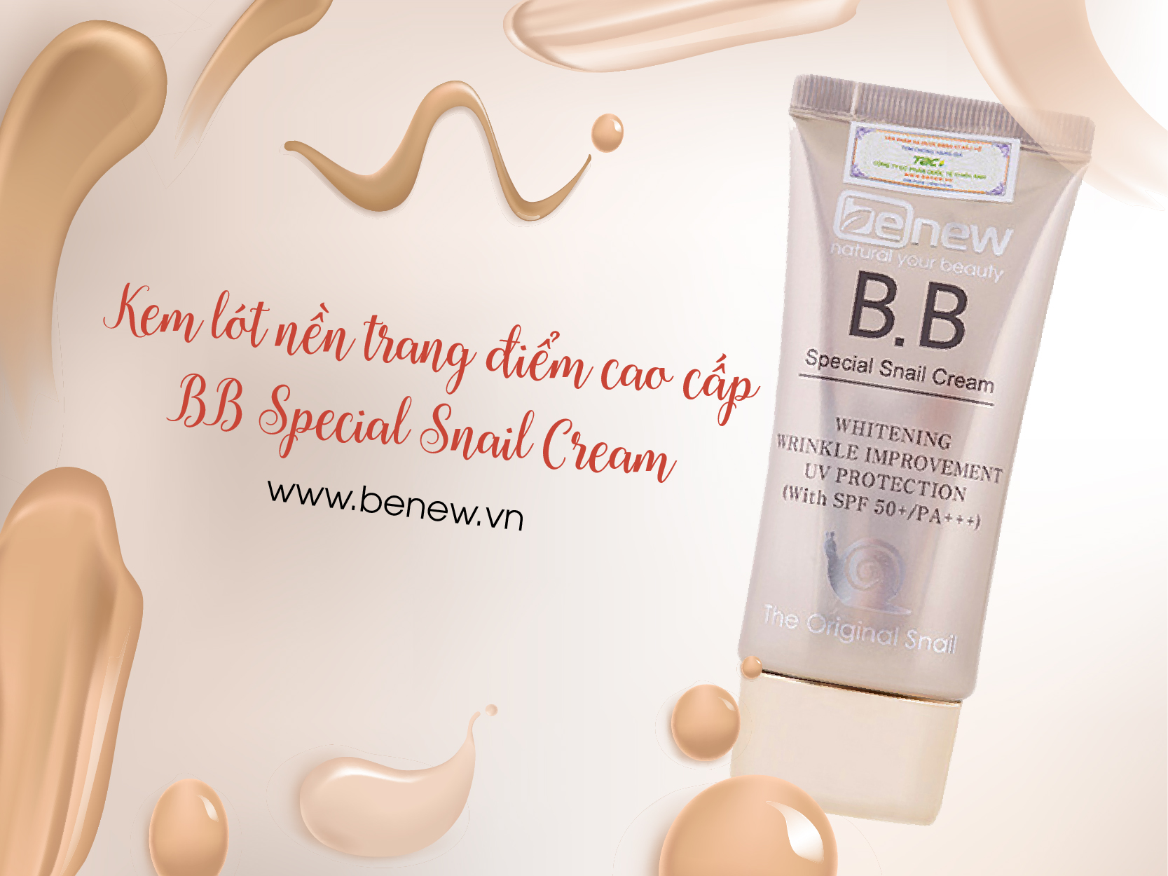 BB Benew Special Snail Cream là sự kết hợp hoàn hảo giữa kem dưỡng và kem nền trang điểm. Không chỉ có khả năng che phủ tốt, sản phẩm còn hoàn thành nhiệm vụ nuôi dưỡng làn da một cách hiệu quả.