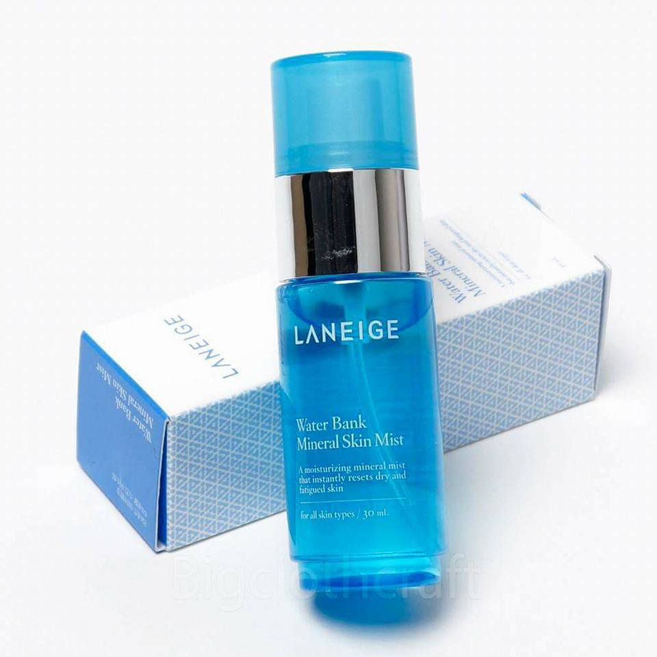 Laneige Water Bank Mineral Skin Mist là dòng nước xịt khoáng của Hàn Quốc tốt nhất cho da khô và da thiếu sức sống. Thành phần nước khoáng tinh khiết được bổ sung hàm lượng khoáng chất có khả năng giúp duy trì độ ẩm cho da, đồng thời có tác dụng giúp các tế bào da phục hồi giữ cho da không bị mất đi độ ẩm cần thiết. Nước xịt khoáng Laneige bổ sung dưỡng chất giúp tăng cường khả năng phục hồi cho làn da thiếu sức sống với chiết xuất từ thiên nhiên. Chiết xuất từ chanh và cỏ roi ngựa giúp làm dịu làn da do tác hại của tia tử ngoại, không khí ô nhiễm, hay sự khô ráp do mất nước qua da. Thành phần chiết xuất từ cây Mùi tây giúp hỗ trợ da tự phục hồi một cách hiệu quả.