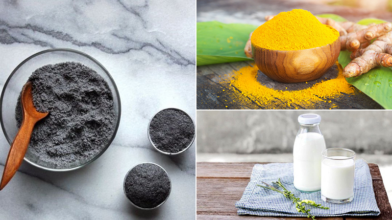 Mặt nạ than hoạt tính, sữa tươi và bột nghệ