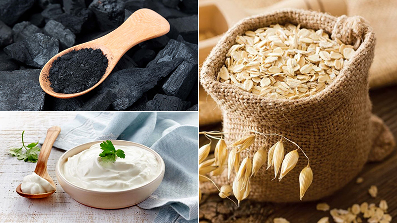 Đắp mặt nạ than hoạt tính, yến mạch và sữa chua