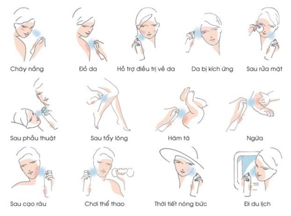 Làm dịu và mát làn da ngay sau khi xịt.