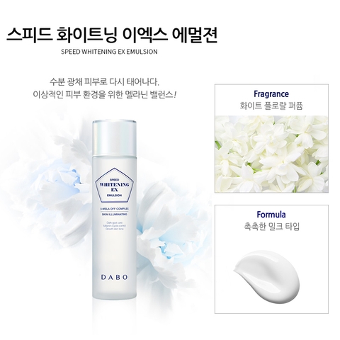 Chọn mỹ phẩm chất lượng là một phần quan trọng trong việc làm sáng da mờ thâm. Dòng sản phẩm chăm sóc da Speed Whitening Ex Dabo là một lựa chọn tốt dành cho phụ nữ trong độ tuổi 20-45 muốn có làn da tươi sáng và đều màu hơn.