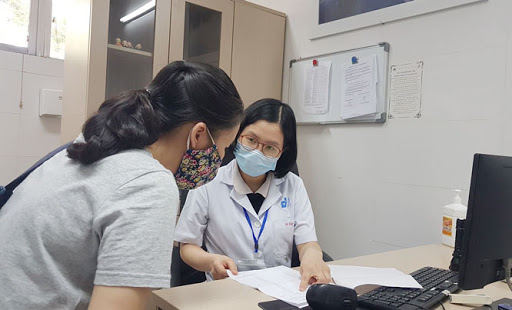 Bác sĩ Đặng Bích Diệp, Trưởng phòng Công tác xã hội, Bệnh viện Da liễu trung ương tư vấn cách chăm sóc da trong mùa hè cho bệnh nhân.