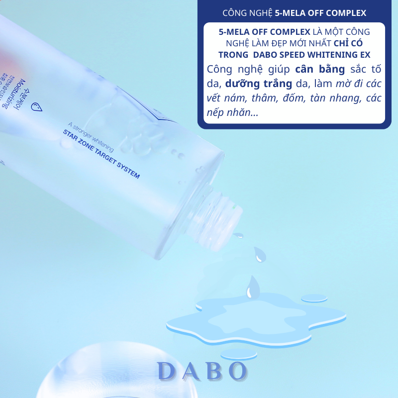 Công nghệ "5-MELA OFF COMPLEX" là điểm đặc biệt của DABO Speed Whitening EX, mang đến những lợi ích đa chiều cho làn da: