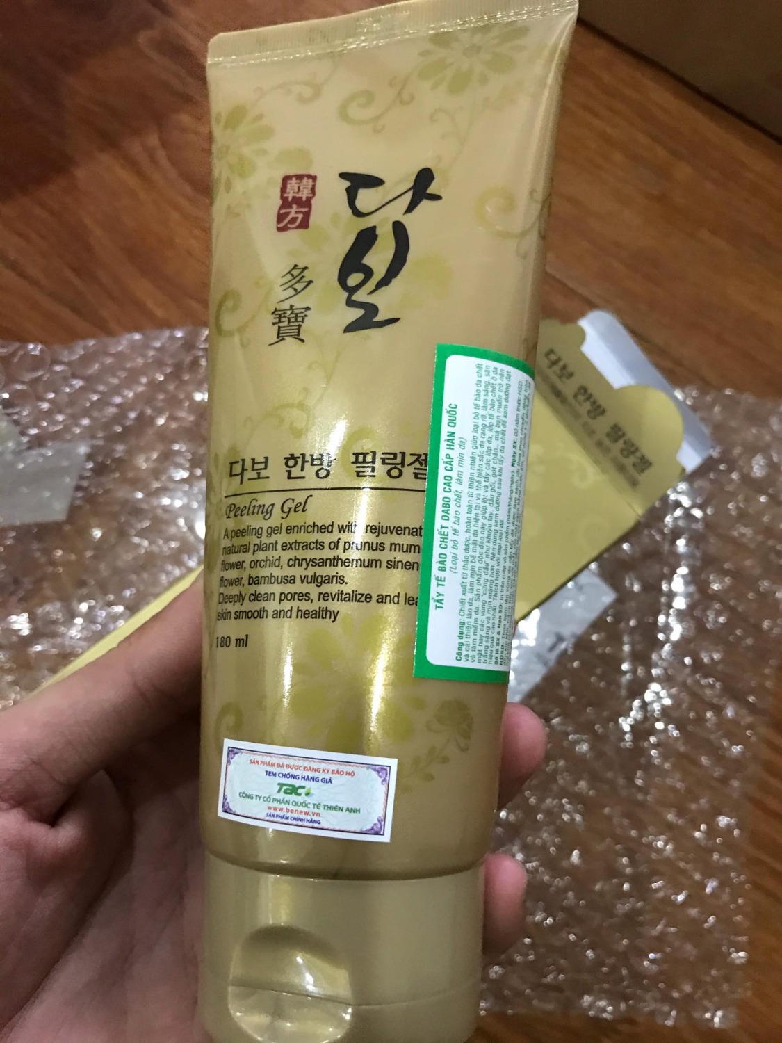 Tẩy da chết Korea Red Ginseng Peeling Gel My Gold Giúp loại bỏ những chất có thải, tẩy sạch bã nhờn và làm thoáng lỗ chân lông làm da bạn sạch hơn. Cung cấp các dưỡng chất làm tăng sắc tố cho da, trẻ hoá các tế bào. Tác dụng giữ ẩm hiệu quả, duy trì sự đàn hối cho làn da mịn màng tươi sáng và trắng hồng tự nhiên. Ngăn ngừa mụn cám, tàn nhang... Cung cấp lượng nước cần thiết để giữ độ ẩm cho da giúp da luôn mềm mại mà không thô ráp. Tạo lớp màng bảo vệ ngăn chặn những tác hại của môi trường lên da.