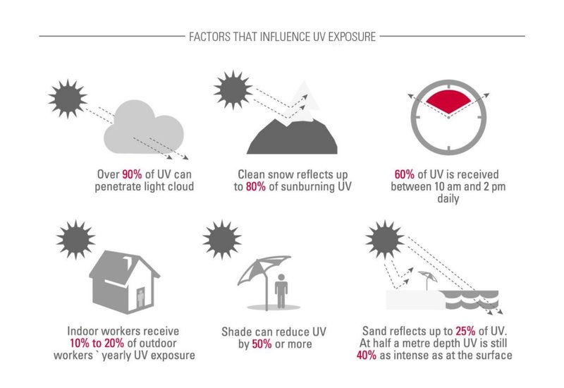 Trong khi đó tia tử ngoại “tia UV” là thứ làm cho da các chị lão hoá nhanh, phá huỷ collagen, làm tăng các vấn đề về sắc tố thì lại là thứ “vô hình” và có khả năng đi xuyên qua bóng râm cũng như phản xạ với bề mặt vật chất như mặt đường, cát và tuyết.