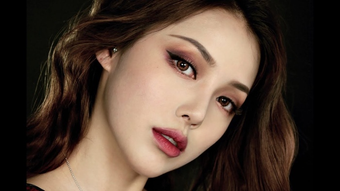 Kiểu trang điểm đơn sắc tông màu đỏ rượu vang phù hợp hơn với những bữa tiệc. Bạn hãy đánh mắt khói và kẻ mắt cún thay vì kẻ mắt mèo sắc sảo.