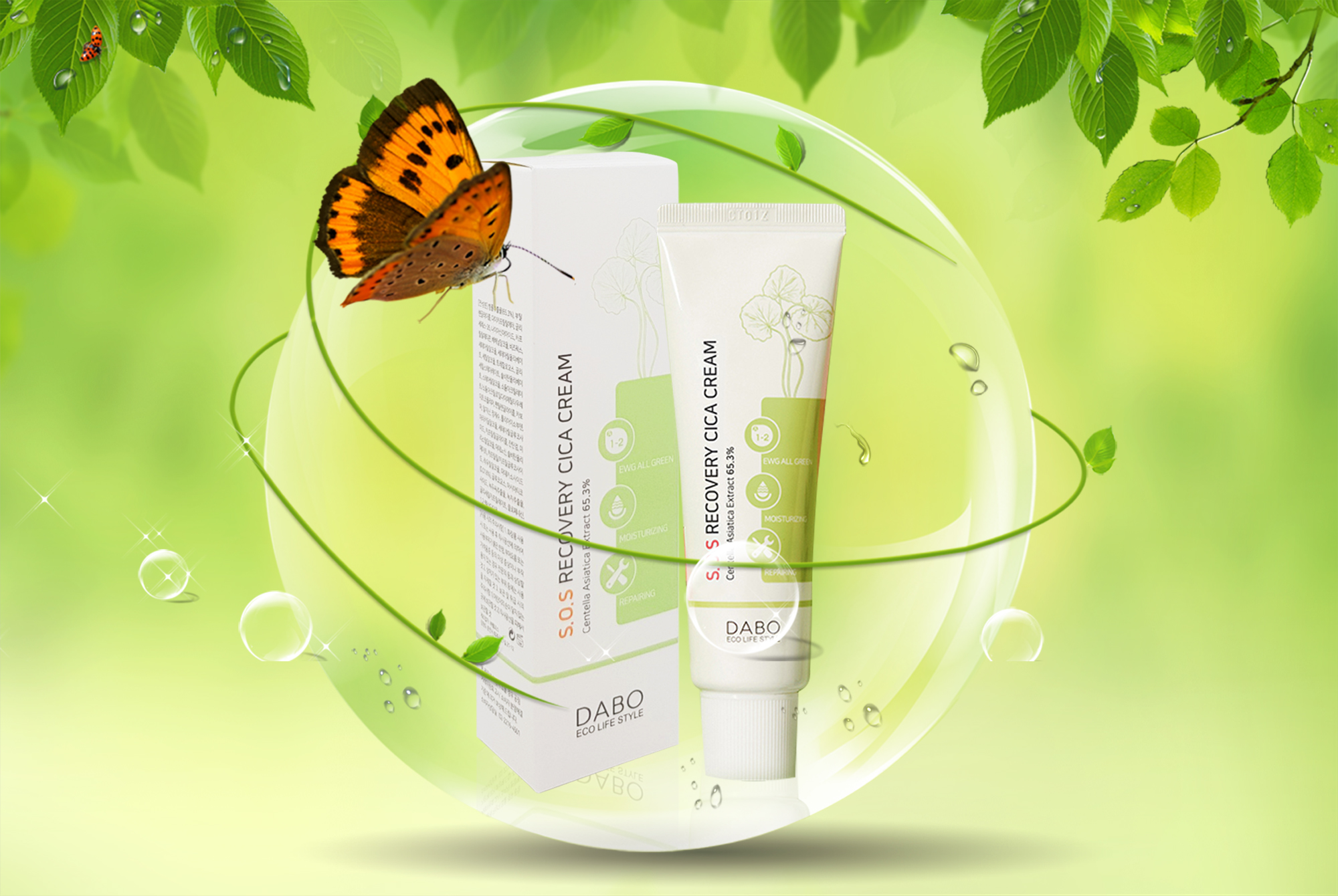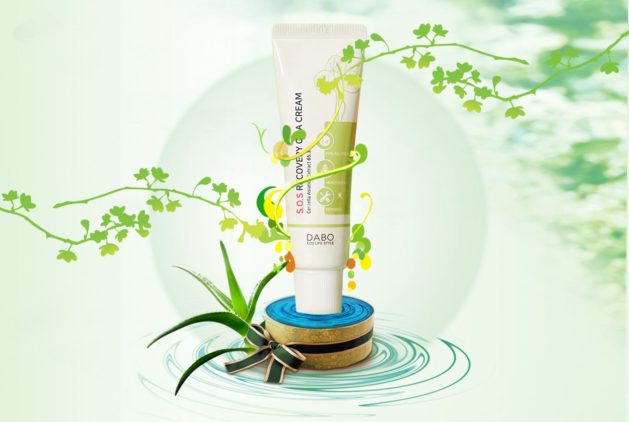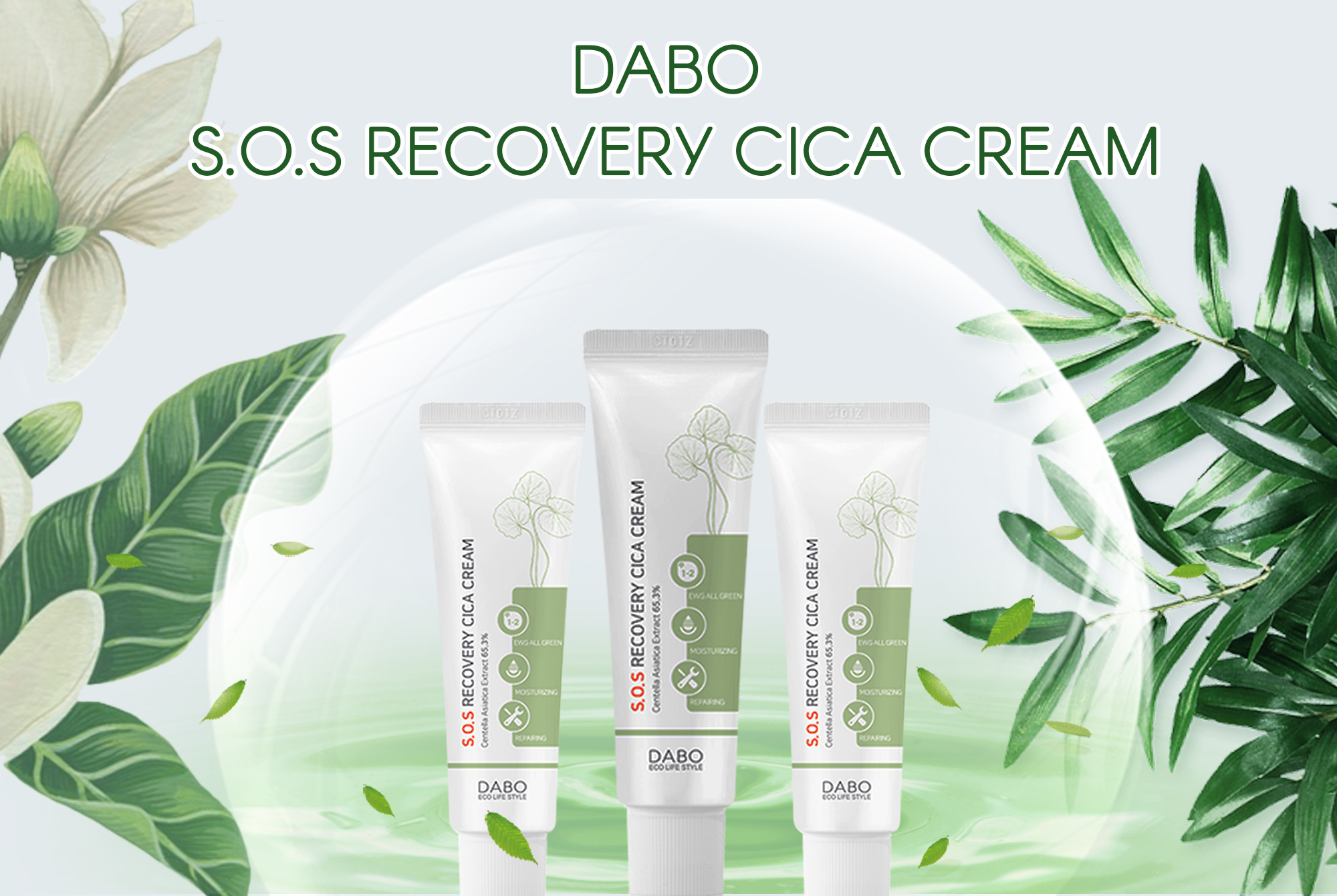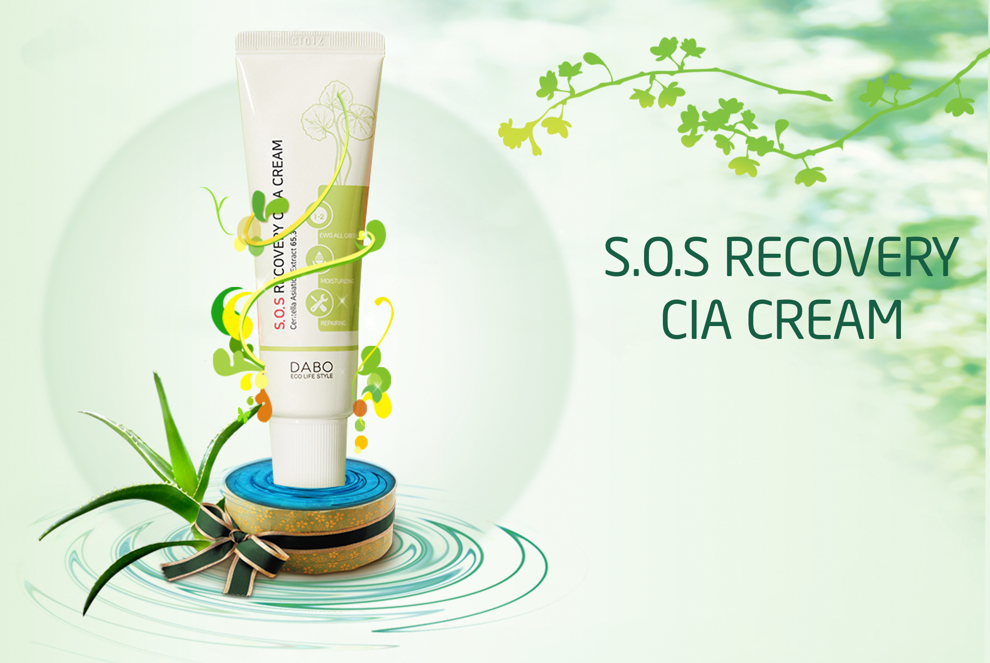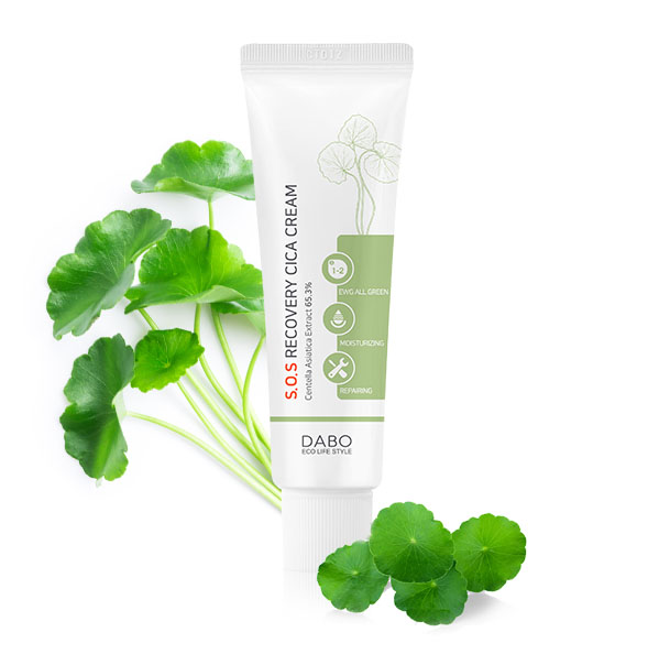 Công dụng: DABO S.O.S Recovery CICA Cream được kết hợp tinh tế bởi 2 tinh chất quý giá Centella asiatica (65.3%) và Adenosine cùng với công thức thành phần đặc biệt đã được tổ chức EWG chứng nhận “Mỹ phẩm thiên nhiên an toàn” có tác dụng: Phục hồi và tái tạo da bị lão hóa, thúc đẩy quá trình tái tạo tế bào da mới, đào thải các tế bào lỗi trên bề mặt da đồng thời kích hoạt các tế bào non mới, điều chỉnh chức năng sinh học tế bào, cải tạo vấn đề hô hấp da, tăng tính đàn hồi, phục hồi các thương tổn ở da do tác động môi trường, nội tiết, sức khỏe... giúp giảm mụn, nám, nếp nhăn trên da. Ngoài ra còn tạo lớp màng ẩm bao phủ bảo vệ da, cải thiện tình trạng khô da do mất nước. Kem giúp xóa mờ nếp nhăn, làm trắng da cực kỳ hiệu quả. Kem đã được các Chuyên gia da liễu hàng đầu Hàn Quốc kiểm định an toàn và thích hợp cho mọi loại da.
