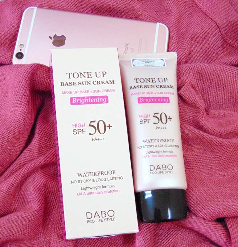 Kem chống nắng DABO Tone Up Base Sun cream có tác dụng chống ô nhiễm, ngăn chặn tia UVA& UVB với độ chống nắng SPF 50 PA+++, giúp che khuyết điểm trên da, hiệu chỉnh màu da bị xỉn và không đều màu, làm cho làn da trở nên rạng rỡ hơn, tự nhiên hơn. Ưu điểm nổi bật đặc biệt của kem chống nắng DABO Tone Up Base Sun cream là không bị rửa trôi khi gặp nước hoặc mồ hôi, không gây nhờn dính, khả năng tự động điều chỉnh tông màu cho phù hợp với màu da.