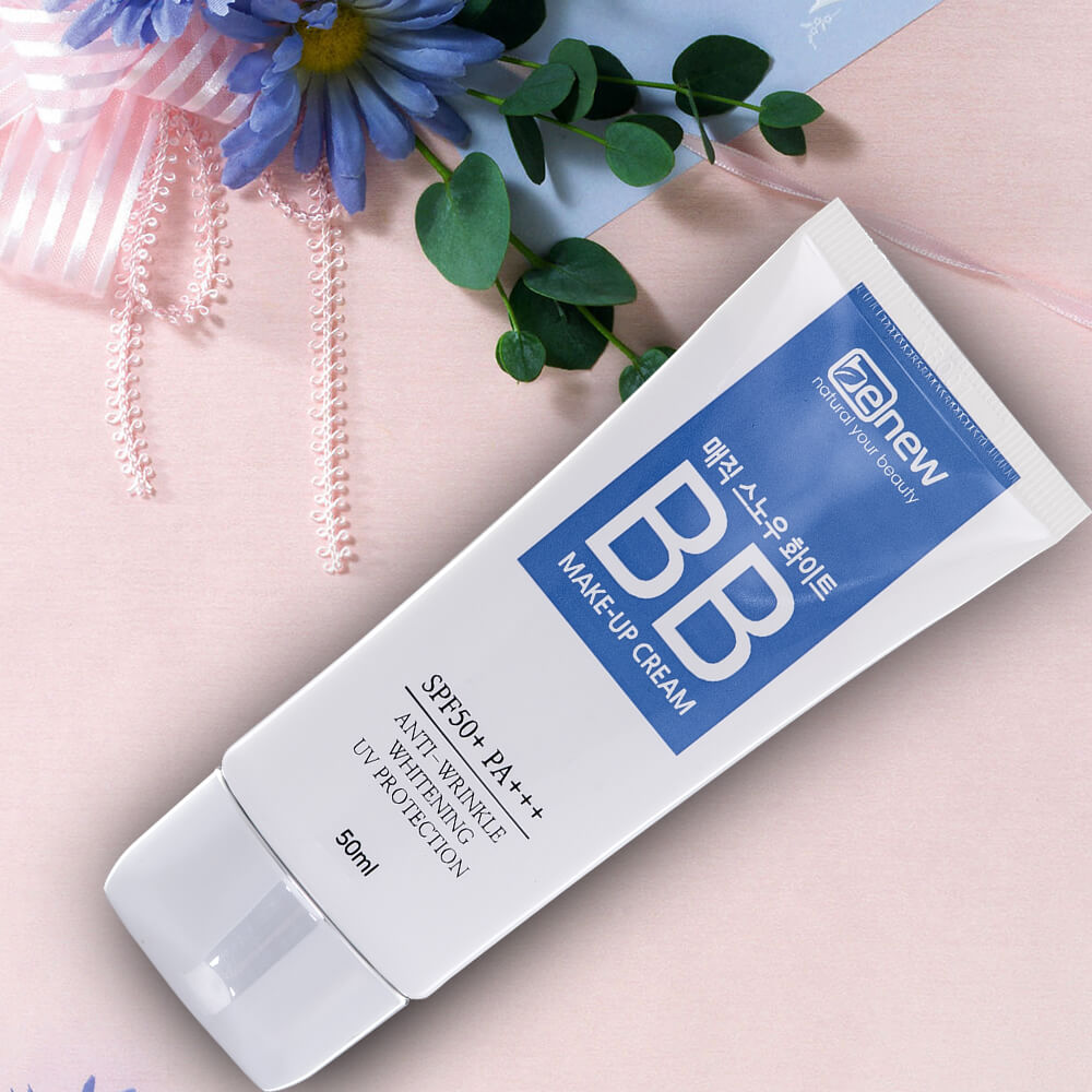 Kem trang điểm BENEW MAGIC SNOW WHITE chiết xuất từ Sáp ong, bột ngọc trai mang lại sức mạnh vượt trội với tính năng 3 in 1: Kem trang điểm, kem lót nền, kem che khuyết điểm hoàn hảo giúp che phủ cực tốt các khuyết điểm trên da. Ngoài ra kem B.B BENEW còn có tác dụng: Dưỡng trắng da, Chống nắng, Chống nhăn, Dưỡng ẩm...vì thế khi sử dụng, làn da vừa được che phủ các khuyết điểm mà vẫn tự nhiên, càng xoa đều càng thấm vào da giúp dưỡng ẩm da một cách hài hòa. Kem B.B rất mịn thấm sâu xuống lỗ chân lông, chống sạm da dưới ánh nắng mặt trời, chống lại tia UVA / UVB với độ chống nắng cao SPF 50 PA+++ làm ngăn ngừa sự sản sinh các vết thâm, nám, tàn nhang. B.B BENEW sử dụng như một loại kem trang điểm hàng ngày không thể thiếu, giúp mang lại vẻ đẹp tự nhiên, không bóng nhờn da, không trôi khi gặp mưa. Phù hợp với mọi loại da, hiệu quả đặc biệt cho da khô, da thường, da bị thâm nám hoặc da có nhiều tì vết.