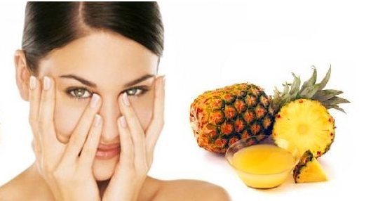 Trong thành phần của quả dứa có chứa một chất tên là Bromelain – một dạng tự nhiên của AHA có tác dụng giảm nếp nhăn và căng da vùng mí mắt rất hiệu quả. Dứa cũng rất an toàn, dễ mua và giá rẻ nên bất cứ ai cũng có thể mua được.