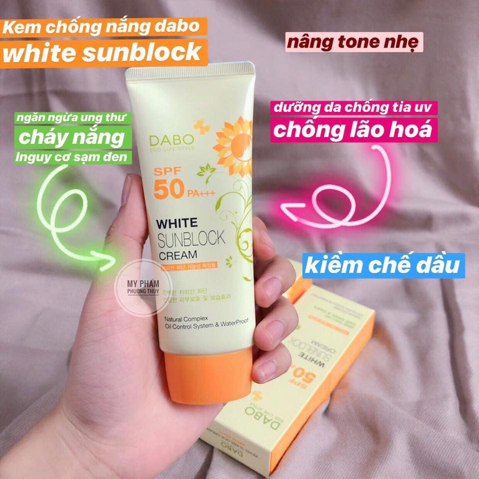 Kem chống nắng bảo vệ da khỏi đen sạm White Sunblock Cream 70ml có chỉ số chống nắng SPF 50, ngăn được tác hại từ tia UVA và UVB. Sản phẩm không gây nhờn rít, không màu, tạo cảm giác dịu nhẹ cho da. Kết cấu dạng kem, áp dụng công nghệ giúp chống nắng, ngăn lão hóa, ngừa ung thư da với 4 màng lọc bảo vệ da trước tia cực tím. Sản phẩm chống nắng hiệu quả cùng khả năng thấm nhanh, khô ráo, đem lại cảm giác thoải mái khi sử dụng. Kem chống nắng bảo vệ da khỏi đen sạm White Sunblock Cream 70ml có giá 125.000 đồng, giảm 36% so với giá gốc.