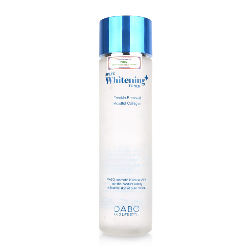 Công dụng: Nước hoa hồng trắng da DABO Speed Whitening-Up được tổng hợp từ tinh chất collagen, bột ngọc trai và trà xanh giúp nhanh chóng làm trắng làn hồng làn da, đồng thời tinh chất trà xanh làm se khít lỗ chân lông, loại bỏ các bã nhờn trên da, ngăn ngừa sự phát triển của tàn nhang, vết thâm nám, làm căng mịn làn da. Nước hoa hồng trắng da DABO Speed Whitening-Up còn cung cấp và dẫn xuất nguồn sinh lực mới cho tế bào da luôn ổn định, mịn màng, tươi trẻ bảo vệ da không bị nhiễm khuẩn. Sau khi sử dụng nước hoa hồng, bạn nên dùng thêm kem dưỡng da DABO giúp da hấp thu được hoàn toàn chất dinh dưỡng nhằm tối ưu hóa quy trình chăm sóc da.