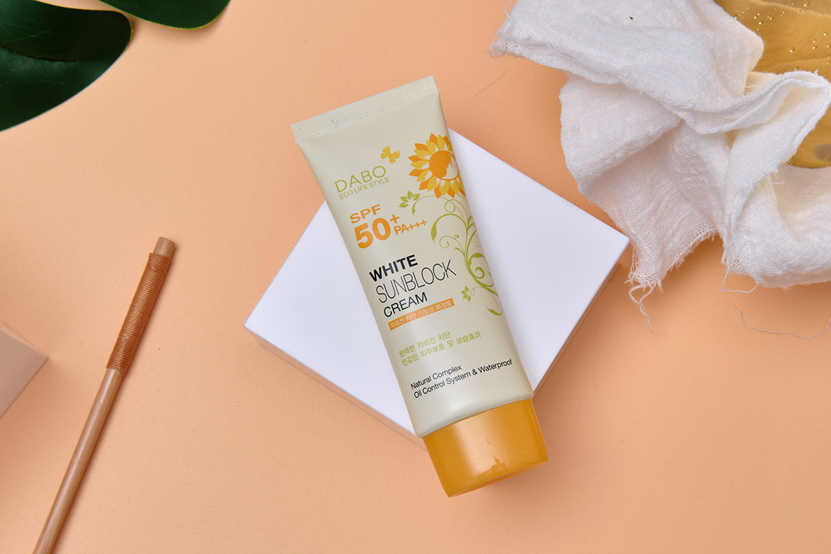 Kem chống nắng trắng da Dabo White Sunblock Cream SPF50 PA+++ với công nghệ cao cấp Sunblock, lớp màng bảo vệ vượt trội giúp da bỏ qua các tia UV có hại, giúp da không bị cháy nắng, đen sạm hay lão hóa mà nguyên nhân chính tới từ ánh nắng mặt trời.