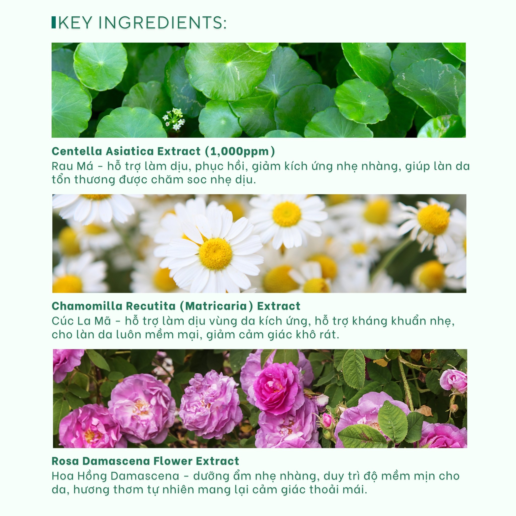 Chiết xuất thảo mộc thiên nhiên: bổ sung dưỡng chất, giúp làm dịu thêm phần nào tình trạng da khô nứt.