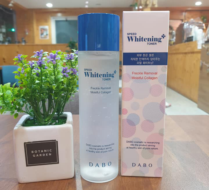 - Loại nước hoa hồng DABO Speed Whitening-Up này được bình chọn tốt nhất trên trang Total Beauty, sản phẩm tốt cho cả người có làn da nhạy cảm, bởi nó không gây kích ứng da. Ngoài ra còn giúp cân bằng độ ẩm, thanh khiết & se khít lỗ chân lông: Với hoạt chất PRO-EXFOLIATINE giúp lấy đi tế bào chết, cho da mềm mịn, dễ dàng hấp thu đồng thời nước hoa hồng DABO Speed Whitening-Up có tác dụng cân bằng độ ẩm và se lỗ chân lông giúp cho kem dưỡng da thấm tốt và phát huy tối đa hiệu quả.
