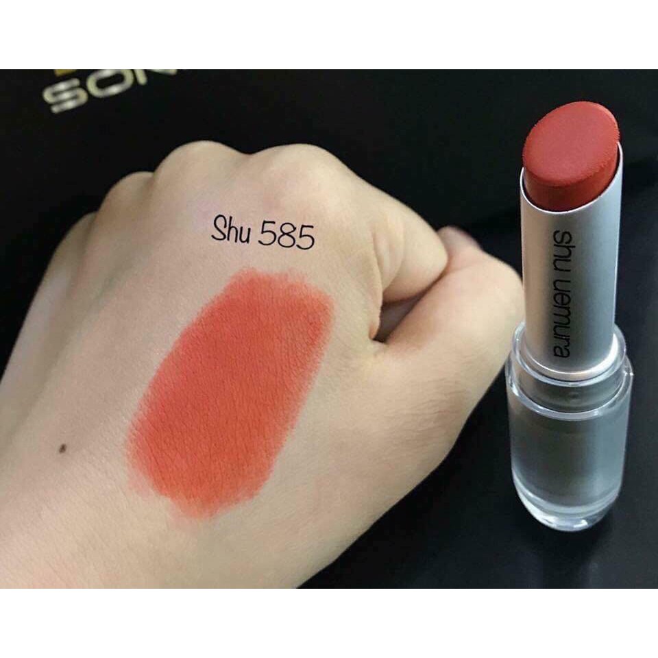 Nếu hỏi về một dòng sản phẩm chuyên cam thì không thể bỏ qua cái tên Shu Uemura đến từ xứ xở Hoa Anh Đào. Đặc biệt Ỏ 585 là một trong 3 cái tên nổi bật trong bộ sưu tập sở hữu sắc son mới lạ hấp dẫn nhờ công thức pha màu độc đáo. Mẫu son màu cam đất này mang theo sự trầm ấm giúp làn môi trở nên đẹp, ngọt ngào và quyến rũ.