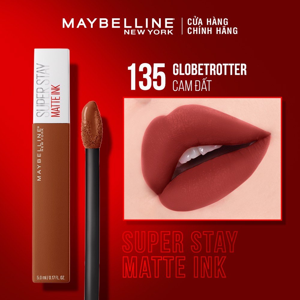 Maybelline Super Matte Ink 135 màu cam gạch là màu son bạn có thể sử dụng ở bất cứ sự kiện nào.  Màu son này giúp bạn rất dễ đánh không hề kén màu da và kết hợp quần áo. Sản phẩm có chất son mềm mà lì giúp bạn có thể ăn uống thoải mái mà không cần tô lại son. Đặc biệt phần cọ của son Maybelline có thiết kế dạng chiếc lá cùng với lỗ khoét ở trong giúp bạn có thể điều tiết lượng son. Với thỏi son cam gạch này sẽ giúp bạn trở nên quyến rũ, cá tính nhưng vẫn rất nhẹ nhàng.