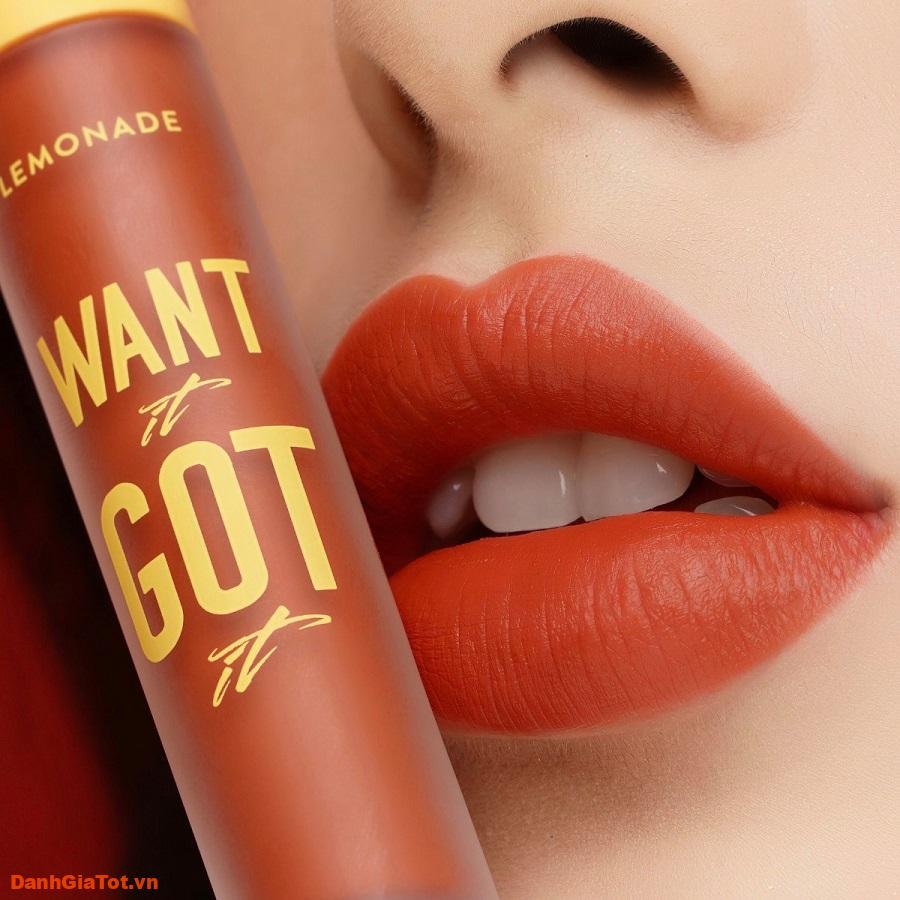 Nếu bạn đang muốn tìm kiếm cho mình một thỏi son màu cam gạch thì chắc chắn bạn không nên bỏ qua dòng son Lemonade Matte Addict A03 Instagram. Thỏi son này mang thiết kế rất ấn tượng với dạng thỏi. Và được chiết xuất ở dạng son lì có khả năng bám màu rất tốt trên môi. Với chất son mềm mại như bơ giúp màu son lên màu chuẩn ngay từ lần. Đặc biệt thỏi son Lemonade này còn có khả năng bảo vệ môi với chỉ số chống nắng và dưỡng môi vượt trội nhờ có tinh dầu Argan.