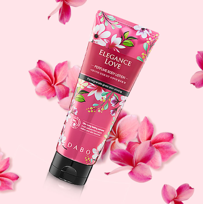 Công dụng: Sữa dưỡng thể hương Nước hoa DABO Elegance Love Perfume thành phần chiết xuất từ thiên nhiên gồm: Trái Bơ hạt mỡ (Shea Butter) từ Châu Phi, hạt Lựu (Punica Granatum Fruit) với công thức độc đáo kết với hợp dầu khoáng (Mineral Oil) giúp chống lão hóa, nâng cơ da và làm mờ lớp nhăn trên da, hỗ trợ xóa đi lớp rạn da sau sinh, giảm bớt vết thâm nám trên da giúp bạn sở hữu làn da trắng mịn. Ngoài ra, sữa dưỡng thể DABO Elegance Love Perfume còn cung cấp độ ẩm cần thiết cho da, kịp thời bổ sung lượng nước bị mất và giúp làn da luôn mềm mại, tươi mát. Đặc biệt Dabo Lotion không gây nhờn, không bít lỗ chân lông, thẩm thấu nhanh. Thích hợp với mọi loại da, đặc biệt hiệu quả với da nhạy cảm hoặc da dễ bị kích ứng.