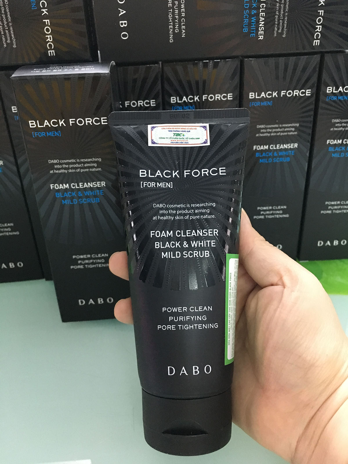 DABO là hãng mỹ phẩm của Hàn Quốc với rất nhiều sản phẩm, sản phẩm của DABO do tập đoàn Nexxen sản xuất, được giám sát chất lượng bởi tập đoàn SAMSUNG. Sữa rửa mặt cao cấp cho nam DABO Black Force – For Men, với công thức độc đáo kết hợp giữa Than hoạt tính, bùn khoáng, tinh chất ngũ cốc, hoa quả và trà xanh… giúp loại bỏ nhờn cho hiệu quả, ngăn ngừa mụn cho Nam giới, đồng thời còn giúp cho làn da sáng bóng, săn chắc đầy nam tính. Ngoài ra, Sữa rửa mặt DABO For Men còn giúp làm giảm kích thước lỗ chân lông, chống lại quá trình lão hóa da ở Nam giới, làm mềm râu giúp giảm cảm giác bỏng rát mỗi khi cạo râu, thích hợp với mọi loại da.