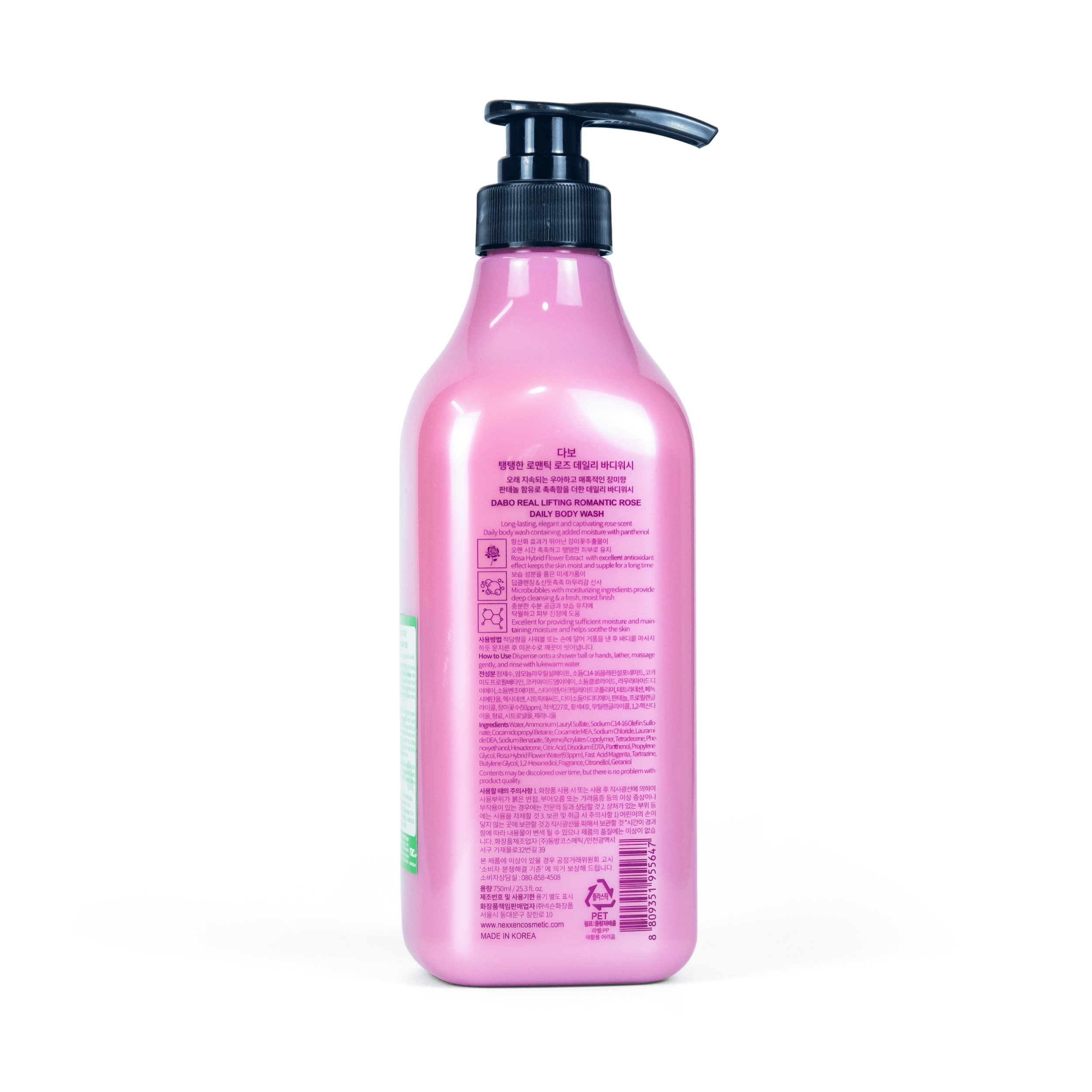Sữa tắm Dabo Romantic Rose Daily Body Wash chứa tinh chất hoa hồng kết hợp nguồn nước khoáng thiên nhiên Hàn Quốc có tác dụng tăng độ ẩm cho da, giảm nếp nhăn, tái sinh tế bào da mới, chống lão hóa da, thu nhỏ lỗ chân lông, tẩy tế bào chết trên da giúp làn da sáng đẹp mịn màng, khỏe mạnh hơn và hồi phục nhanh cho da yếu.
