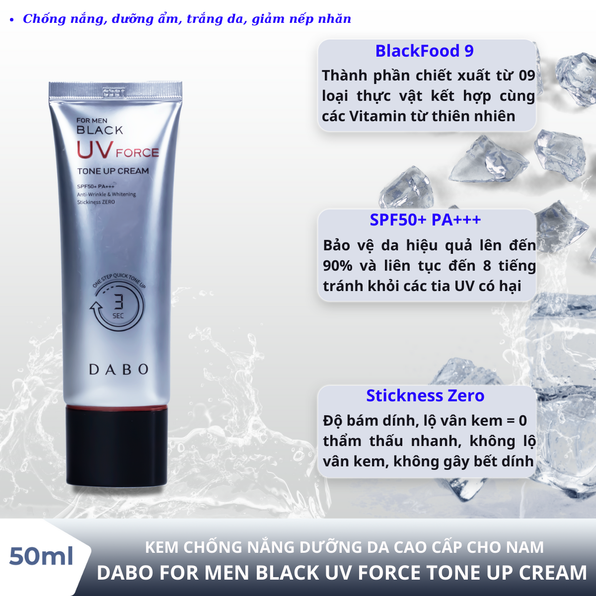 C.Kem Chống Nắng, Dưỡng Da Cao Cấp Dành Cho Nam - DABO FOR MEN BLACK UV FORCE TONE UP CREAM