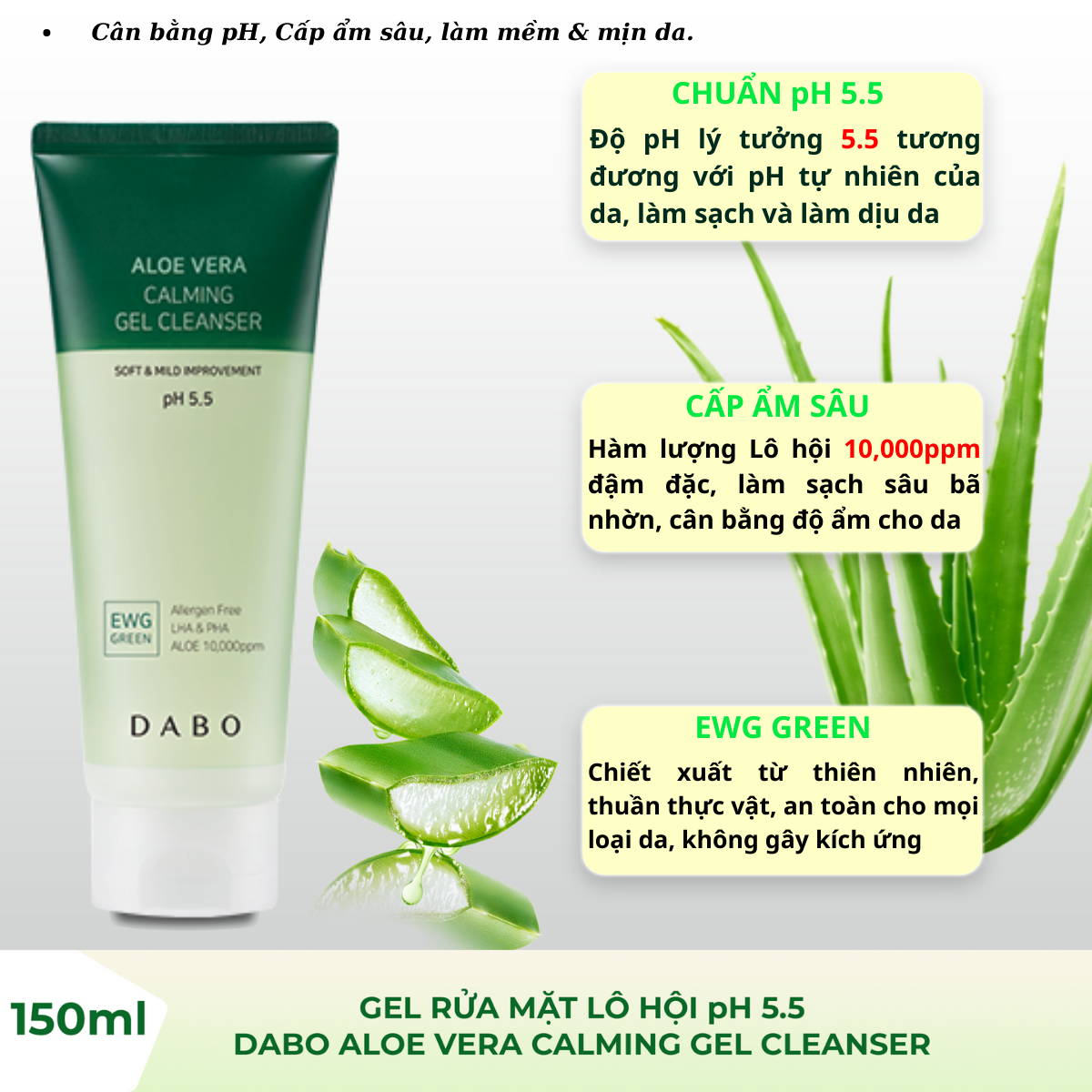 Gel Rửa Mặt Lô Hội pH 5.5 - DABO Aloe Vera Calming Gel Cleanser 150ml