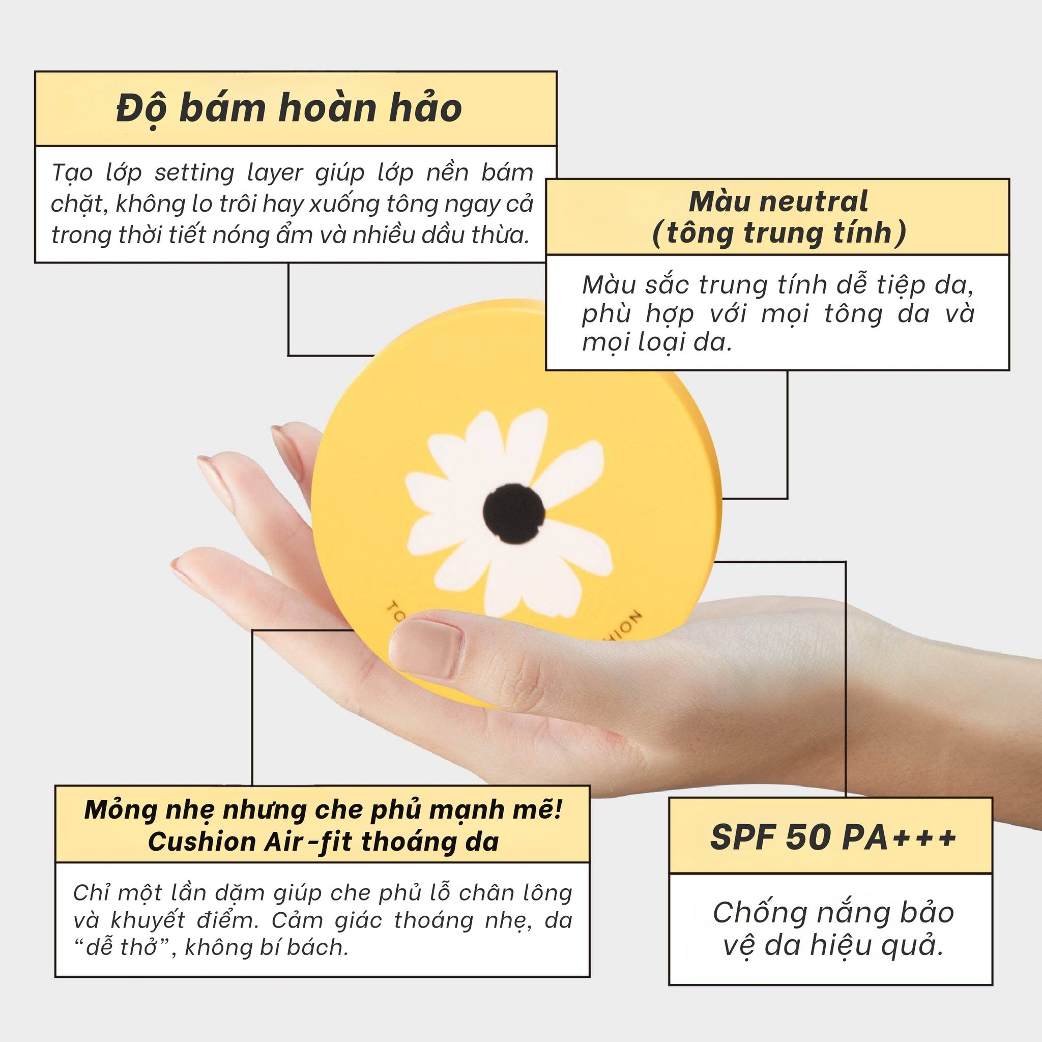Nhằm mang đến trải nghiệm ngày càng tốt hơn cho người dùng, DABO Total Solution BB Cushion chính thức được thay đổi bao bì với diện mạo mới. Đây là sự điều chỉnh về thiết kế bên ngoài, giúp sản phẩm trở nên hiện đại, trẻ trung và dễ nhận diện hơn trong quá trình sử dụng.