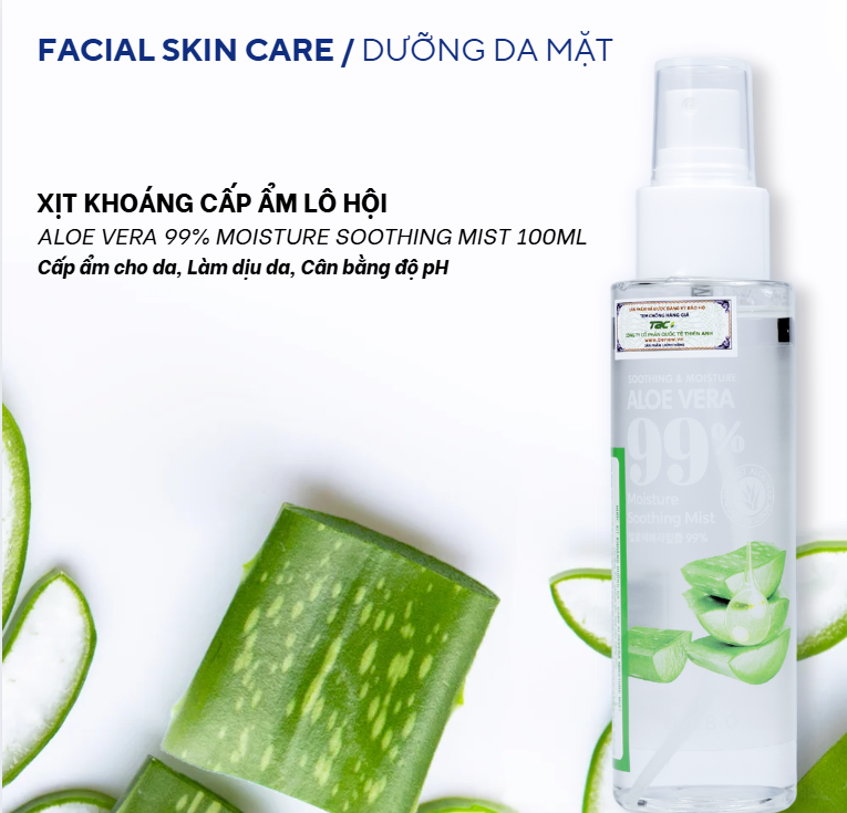 Bên trong diện mạo mới vẫn là chiết xuất lô hội tự nhiên 99%, kết hợp cùng công thức dịu nhẹ giúp cấp ẩm nhanh, làm dịu tức thì và cân bằng độ pH cho da. Sản phẩm giúp giảm cảm giác khô căng, kích ứng do thời tiết hoặc môi trường, mang lại làn da mềm mượt, ẩm mịn và tươi tắn suốt cả ngày.