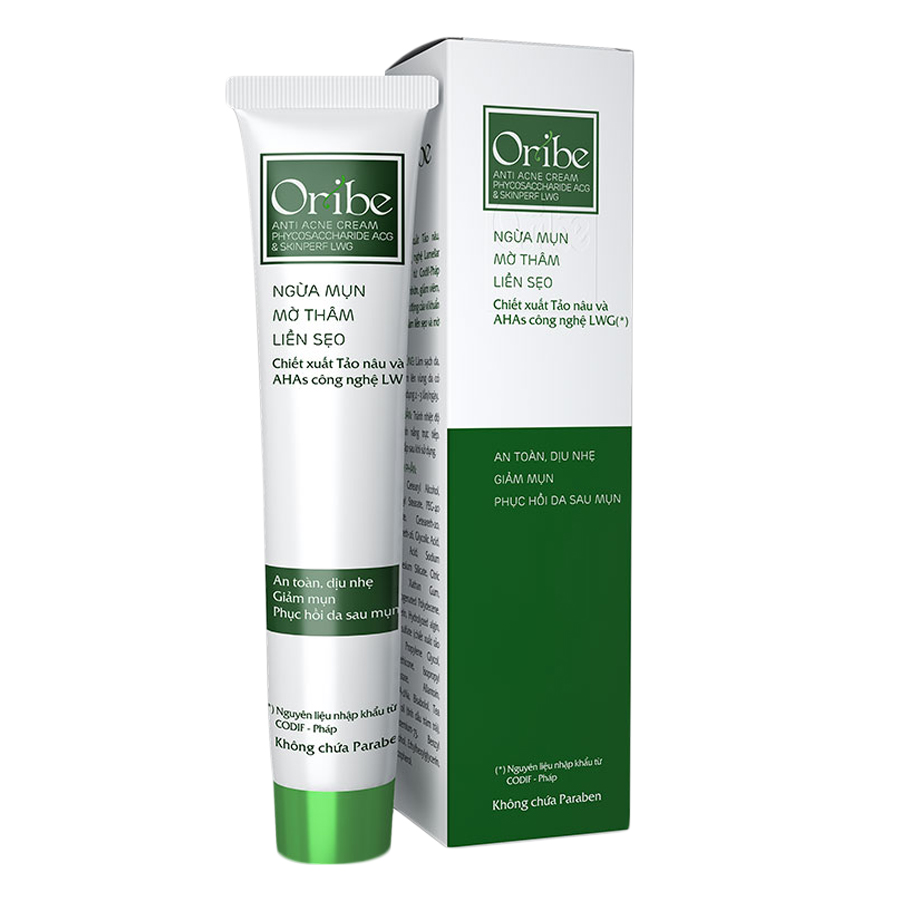 Kem Ngừa Mụn, Mờ Thâm, Liền Sẹo Chiết xuất tảo nâu từ Pháp - Ori'be Anti Acne Cream - Tuýp 20g chuyên đặc trị các vết sẹo thâm do mụn, côn trùng cắn, thủy đậu, vết thâm do trầy xước, lấp đầy sẹo rỗ, xóa sổ sẹo lõm bất kể tuổi sẹo. Giúp làm sáng da, hỗ trợ làm mềm, tăng cường độ đàn hồi, lấy lại làn da tự tin cho bạn.