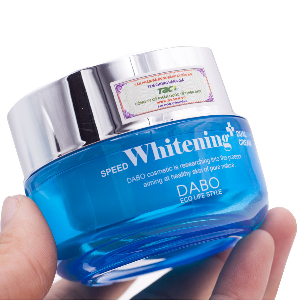 Kem DABO Speed Whitening Dual Cream giúp nâng tone nhẹ cho da, nhanh chóng mang lại làn da trắng sáng mịn màng, hồng hào mà vẫn đảm bảo độ an toàn tuyệt đối cho người sử dụng, kem phù hợp với mọi loại da.