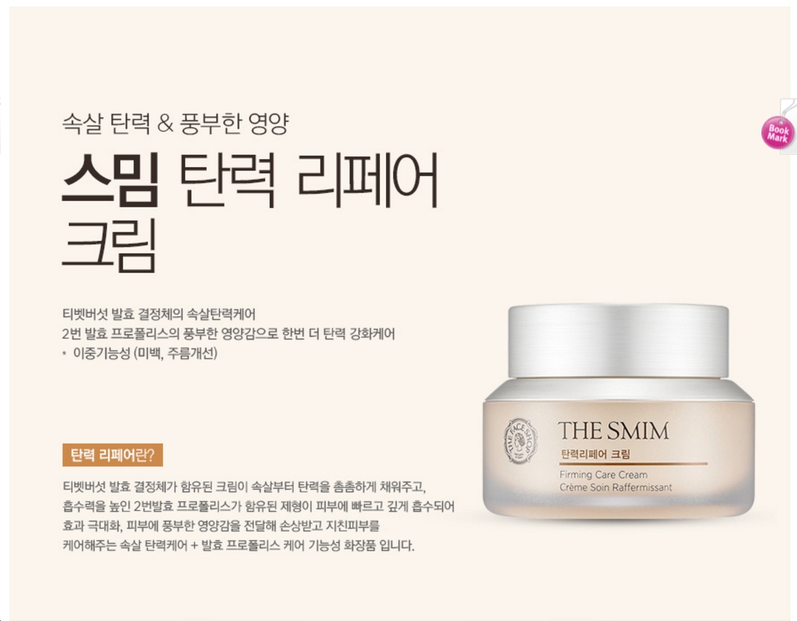 SMIM Firming Care Cream là dòng sản phẩm có chiết xuất thiên nhiên không paraben, không màu, không mùi nhân tại. Với những thành phần từ nấm Tây Tạng, keo ong lên men 2 lần, đây là sản phẩm lên men tự nhiên giúp tăng khả năng đàn hồi, cải thiện nếp nhăn và giúp trắng da từ bên trong mà không gây kích ứng da.