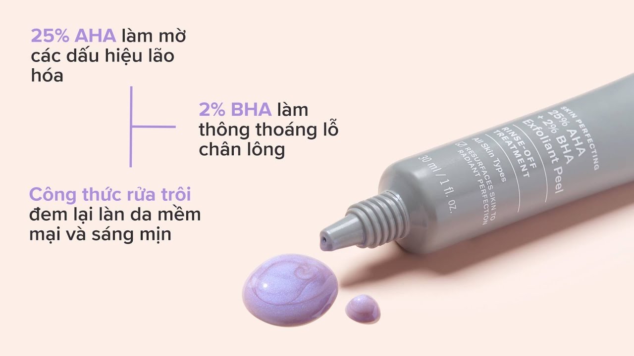 Dựa vào cơ chế thay da sinh học, em nó giúp tái tạo làn da, cải thiện bề mặt thô ráp và loại bỏ lớp da chết với 25% AHA. Trong khi đó, 2% BHA còn lại hỗ trợ làm thông thoáng, khắc phục tình trạng bít tắc lỗ chân lông và làm mờ nếp nhăn rõ rệt.