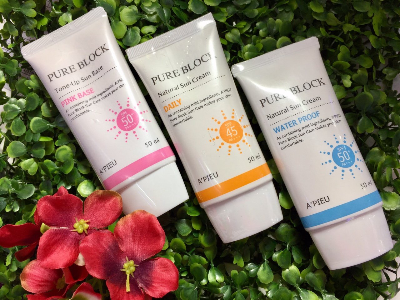 Khi nhắc đến kem chống nắng hàn quốc thì không thể thiếu được A’pieu Pure Block Natural Sun Cream là dòng kem chống nắng vật lý lành tính và an toàn cho da. A’pieu Pure Block Natural Sun Cream có 3 dòng cơ bản sau: