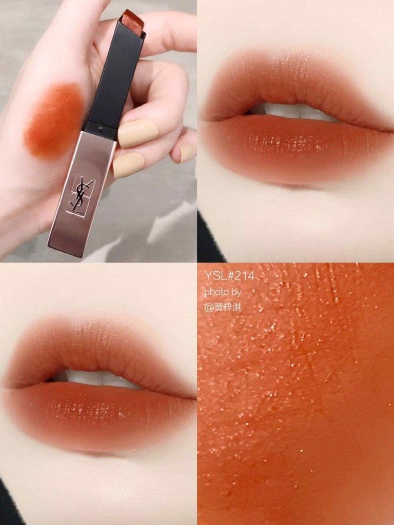 Son màu cam cháy YSL Rouge Pur Couture The Slim Glow Matte 214 Illicit Orange là thỏi son mà bạn không thể bỏ qua. Dòng son này cho màu rất chuẩn xác, cũng như khi lên môi nhìn mọng cùng chất son mịn, mềm và rất mướt, cũng như có rất nhiều dưỡng cho môi.
