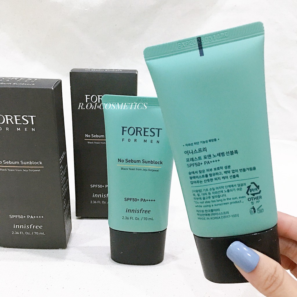 Kem chống nắng cho mặt Innisfree Forest For Men No Sebum Sunblock SPF50/PA+++ là sản phẩm được hãng mỹ phẩm Hàn Quốc ưu ái dành riêng cho cánh mày râu. Thành phần chính của sản phẩm được chiết xuất hoàn toàn từ các nguyên liệu tự nhiên là: