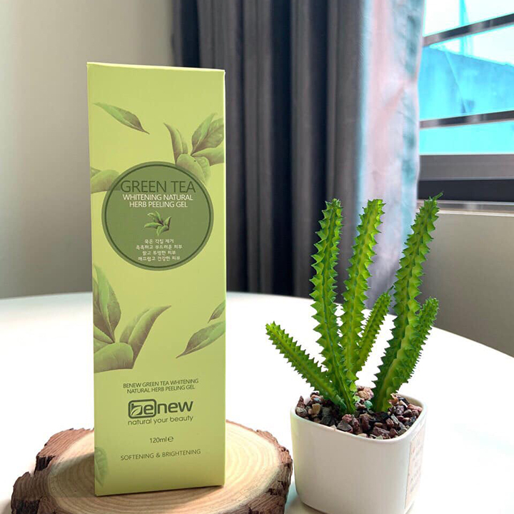 Kem tẩy tế bào chết Trà Xanh Hàn Quốc Benew Green Tea Peeling Gel nhẹ nhàng làm dịu mụn sưng đỏ, đồng thời lấy những chất bịu bẩn, chất sừng và mụn cám trên da một cách hiệu quả, mang đến cho bạn một làn da mịn màng, tươi mới. Bên cạnh đó, dầu ôliu có trong kem sẽ giúp nuôi dưỡng, giúp da trắng dần lên, đồng thời giúp da săn chắc hơn. Sản phẩm chiết xuất từ những thành phần tự nhiên nên tuyệt đối an toàn đối với người sử dụng.