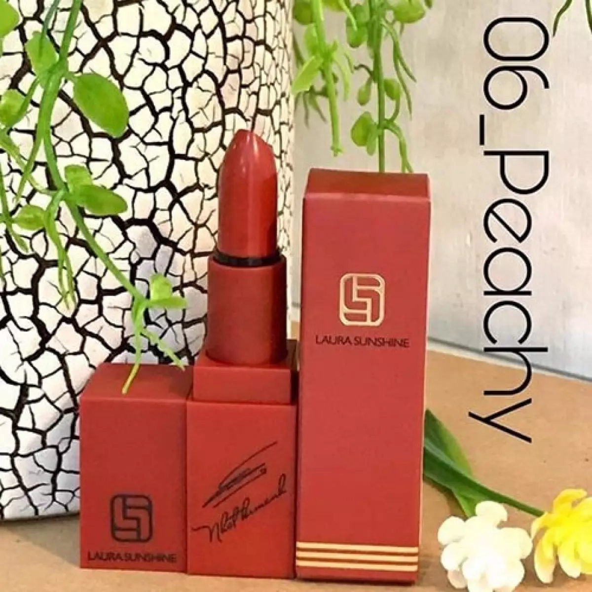 Tiếp đến trong danh sách là dòng son đến từ thương hiệu Laura Sunshine. Son Laura Sunshine Peachychy 06 được sản xuất từ công nghệ nano nén của Hàn Quốc. Sản phẩm được thiết kế vỏ ngoài dạng khối nhỏ gọn và có màu trùng với màu son bên trong tạo nên tổng thể vô cùng bắt mắt. Bạn có thể bỏ thỏi son vào túi xách để mang theo mình và sử dụng bất kỳ nơi nào rất tiện lợi.